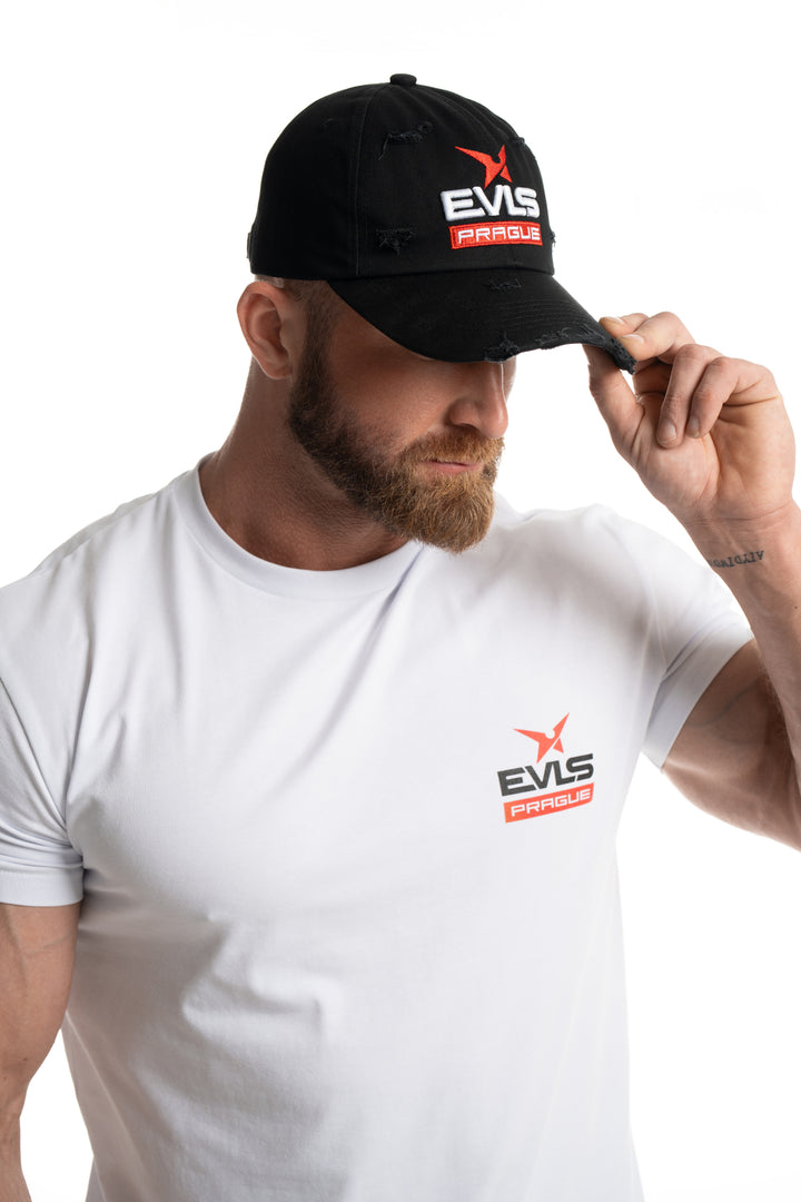 Drsný vzhled, který si zamiluješ. Tuhle stylovou kšiltovku zdobí vyšívané logo EVLS a unikátní potrhaný design, který jí dodává pořádný charakter. Ideální doplněk pro všechny, kdo se nebojí vyčnívat z davu – ať už ve fitku, nebo ve městě.