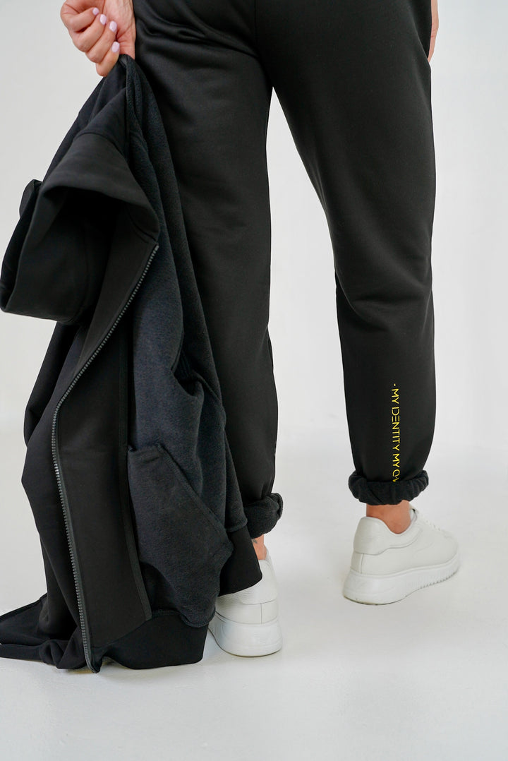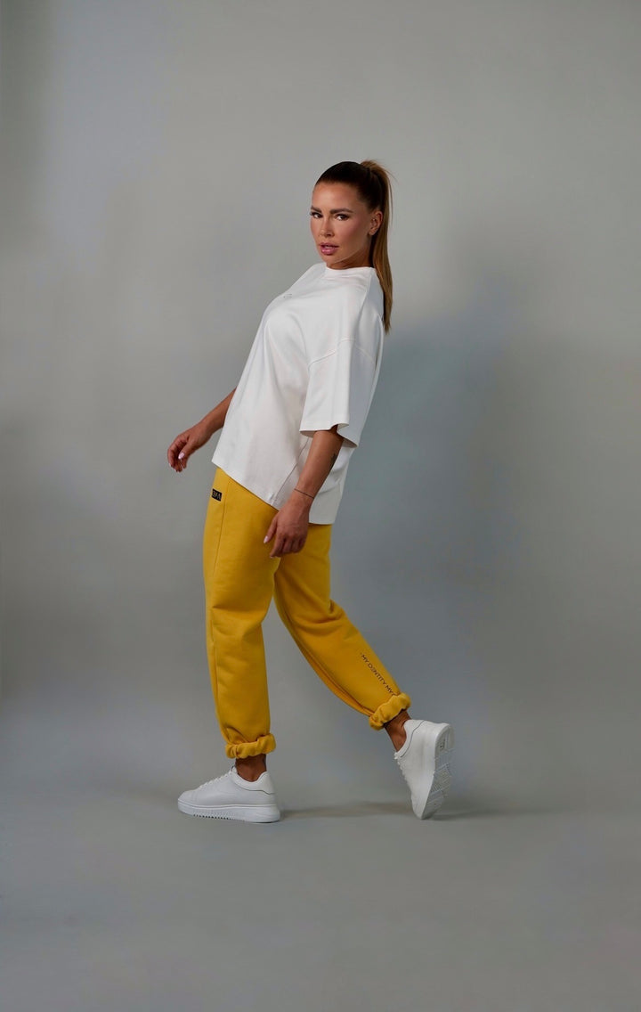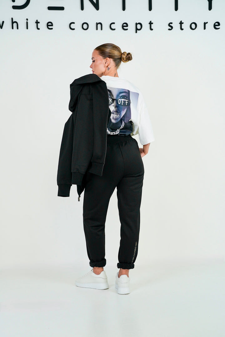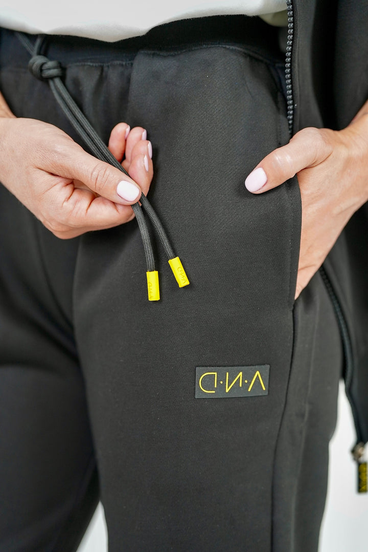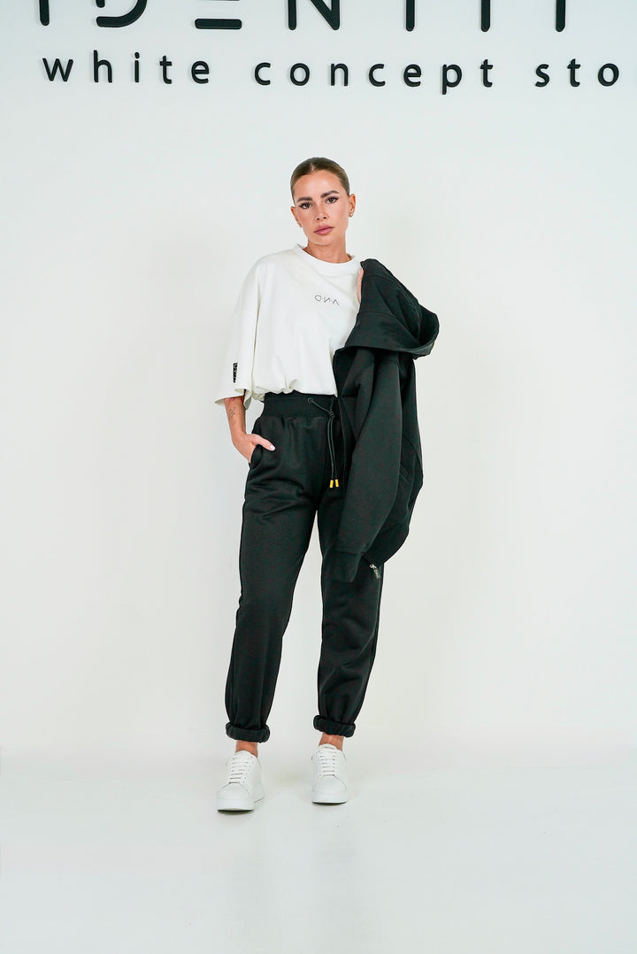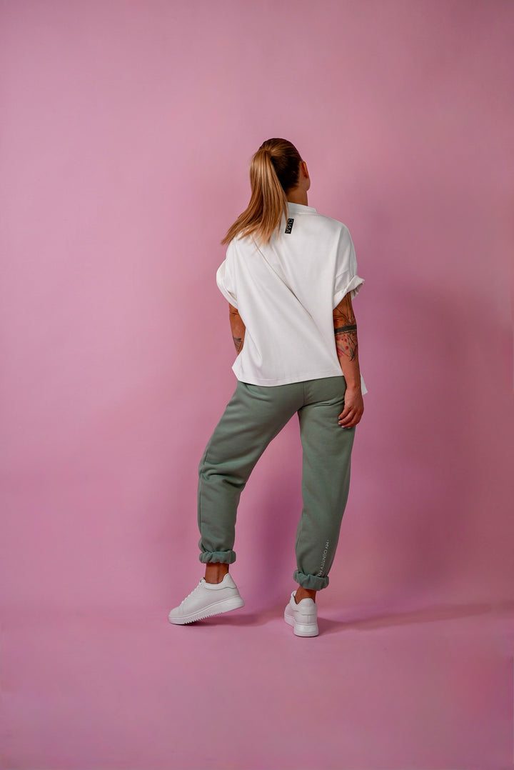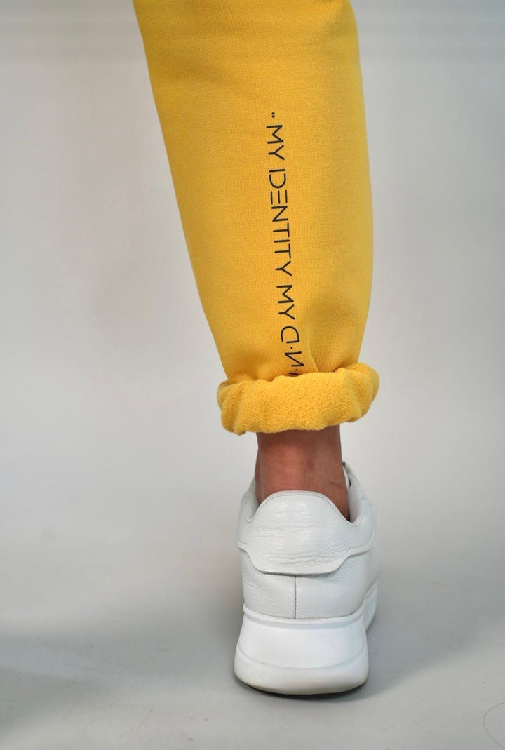 Dámská tepláky s vyšším pasem ze signifikantní kolekce IDENTITY se středně vysokou gramáží představují unikátní nadčasový styl a pohodlí. Pletenina IDENTITY je na dotek velmi příjemná, vyznačuje se nejvyšší kvalitou zpracování a hustým pletením. Materiálové složení látky sestává z vysokého podílu prémiové bavlny a z menšího poměru polyesteru, díky kterému si tepláky drží svůj tvar a i po mnohonásobném vyprání neztrácí barvu.