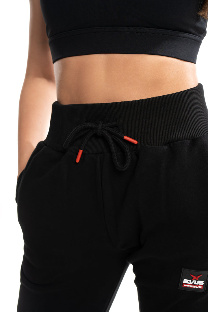 Maximum comfort and style that you won't want to miss! These deep black sweatpants made of 100% cotton were created in collaboration between TIMME and EVLS PRAGUE. They are decorated with the EVLS logo on the back leg and a silicone label under the left pocket. Ideal for chilling out or going to the gym - simply a piece that you will enjoy wearing.