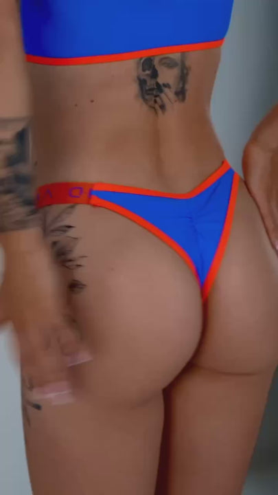 Buď neprehliadnuteľná s plavkovými brazilkami D.N.A v žiarivej kombinácii Blue Coral. Kráľovsky modrá v kontraste s neónovo oranžovými detailmi predstavuje dokonalý kúsok, ktorý vynikne na každej postave.